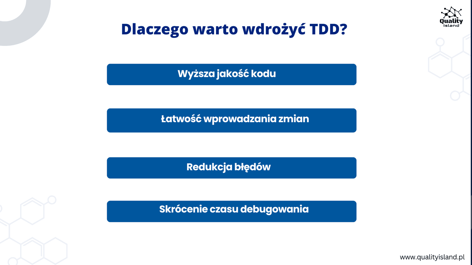 Dzięki TDD debugowanie staje się szybsze i bardziej przewidywalne, co pozwala zespołowi skupić się na dostarczaniu wartościowych funkcjonalności, zamiast na rozwiązywaniu problemów.