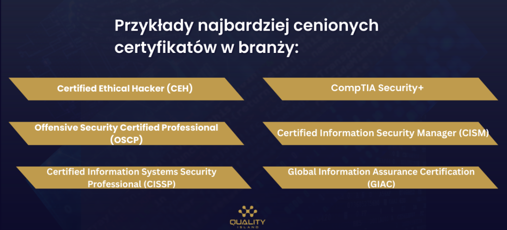 Posiadanie certyfikatów w dziedzinie cyberbezpieczeństwa jest nie tylko dowodem na posiadanie określonej wiedzy i umiejętności, ale również może znacząco zwiększyć atrakcyjność kandydata na rynku pracy. Dla testerów oprogramowania, którzy pragną przebranżowić się w cyberbezpieczeństwo, zdobycie odpowiednich certyfikatów jest kluczowym krokiem. Oto niektóre z najbardziej cenionych certyfikatów w branży: