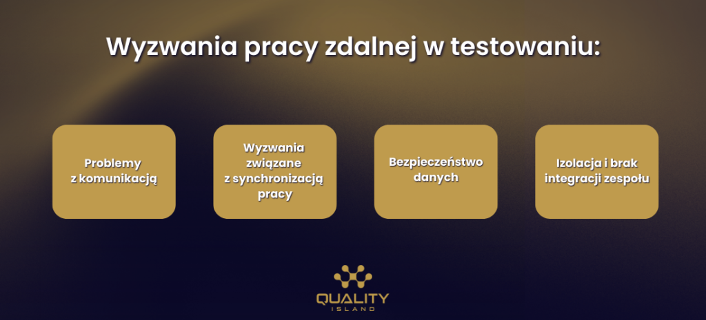 • Testerzy pracujący zdalnie mogą czuć się odcięci od zespołu, co obniża zaangażowanie i poczucie przynależności.