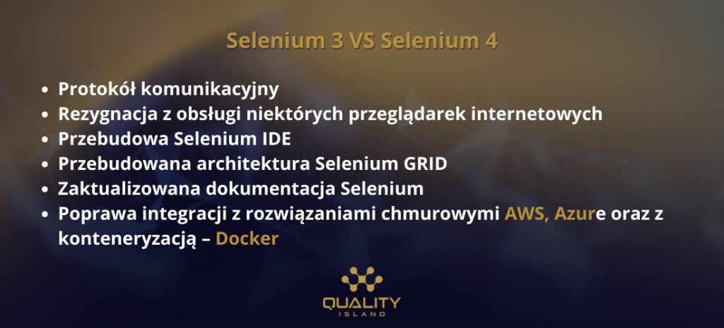 Dlaczego jest to tak ważna zmiana? Otóż do tej pory w wersji Selenium 3, zdarzały się takie sytuacje, że pewne polecenia, komendy Selenium działały różnie –  w zależności o stosowanej przeglądarki internetowej!