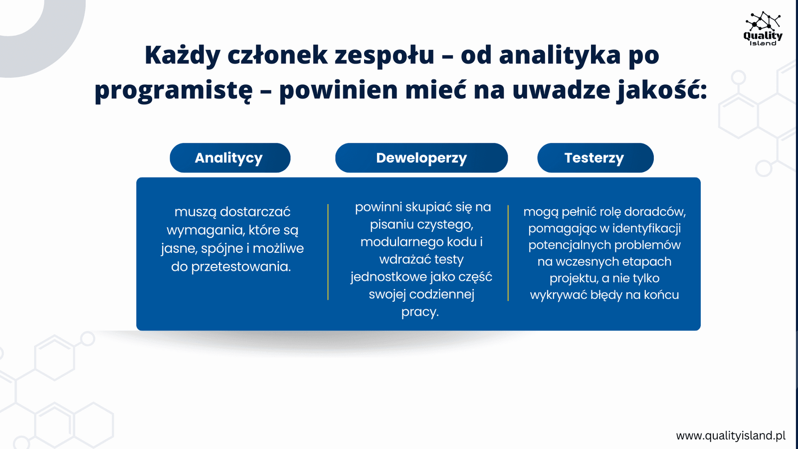 W nowoczesnych zespołach testerzy przestają być jedynie „detektorami błędów” i stają się partnerami w projektowaniu procesów zapewnienia jakości. Ich zadanie polega nie tylko na wykrywaniu problemów, ale także na współpracy z deweloperami i analitykami w celu zapobiegania ich powstawaniu.