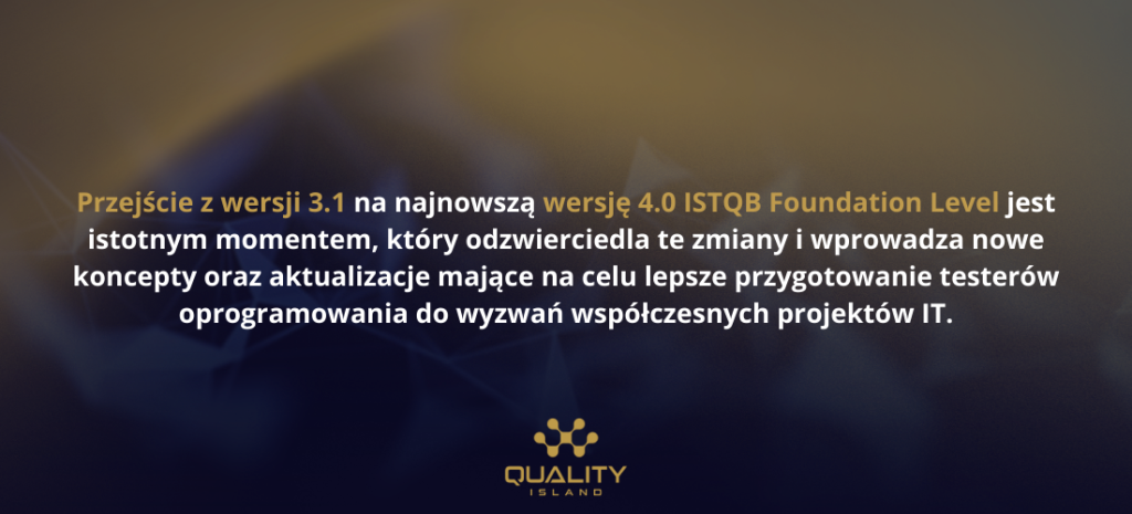 Międzynarodowa Rada ds. Testowania Oprogramowania (ISTQB) regularnie aktualizuje swoje programy certyfikacyjne, aby dostosować je do ewoluującego krajobrazu testowania oprogramowania i nowych technologii. Przejście z wersji 3.1 na najnowszą wersję 4.0 ISTQB Foundation Level jest istotnym momentem, który odzwierciedla te zmiany i wprowadza nowe koncepty oraz aktualizacje mające na celu lepsze przygotowanie testerów oprogramowania do wyzwań współczesnych projektów IT. Poniżej postaram się przedstawić kluczowe zmiany i aktualizacje wprowadzone w wersji 4.0.