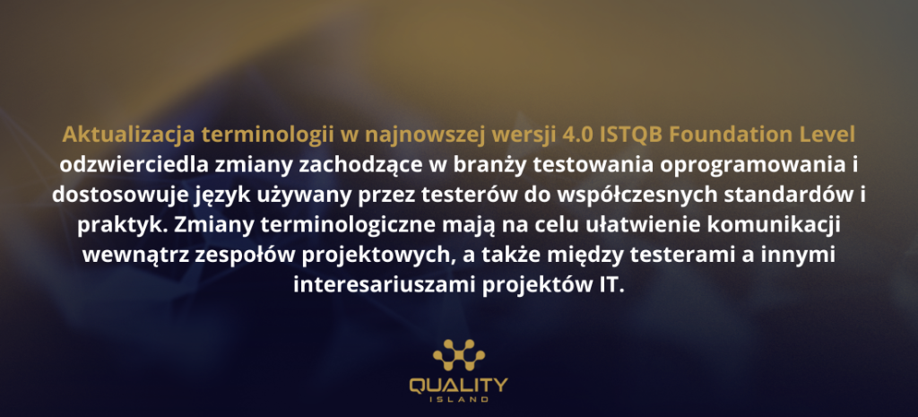 Aktualizacja terminologii w najnowszej wersji 4.0 ISTQB Foundation Level odzwierciedla zmiany zachodzące w branży testowania oprogramowania i dostosowuje język używany przez testerów do współczesnych standardów i praktyk. Zmiany terminologiczne mają na celu ułatwienie komunikacji wewnątrz zespołów projektowych, a także między testerami a innymi interesariuszami projektów IT. Oto niektóre z kluczowych aktualizacji terminologii, które zostały wprowadzone: