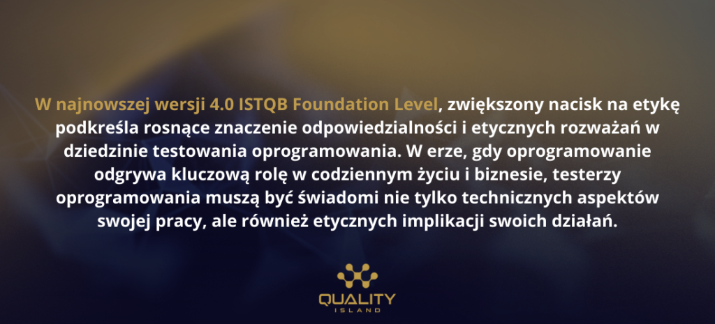 Nowa wersja programu ISTQB podkreśla odpowiedzialność testerów za jakość i bezpieczeństwo oprogramowania. Testery muszą być świadome, że błędy i luki w bezpieczeństwie mogą mieć poważne konsekwencje dla użytkowników końcowych oraz dla organizacji. Dlatego też, ISTQB 4.0 zwraca uwagę na znaczenie dokładnego testowania i identyfikowania potencjalnych zagrożeń, aby zapewnić, że oprogramowanie jest jak najbezpieczniejsze przed wprowadzeniem na rynek.