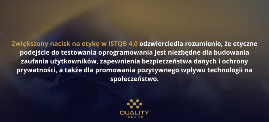 W kontekście rosnącej uwagi na bezpieczeństwo danych i prywatność, ISTQB 4.0 podkreśla znaczenie etyki zawodowej, w tym uczciwości, odpowiedzialności oraz poszanowania prywatności i praw użytkowników.