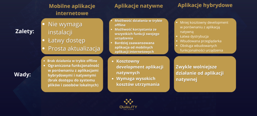 Aplikacje mobilne dzielą się na trzy główne typy: