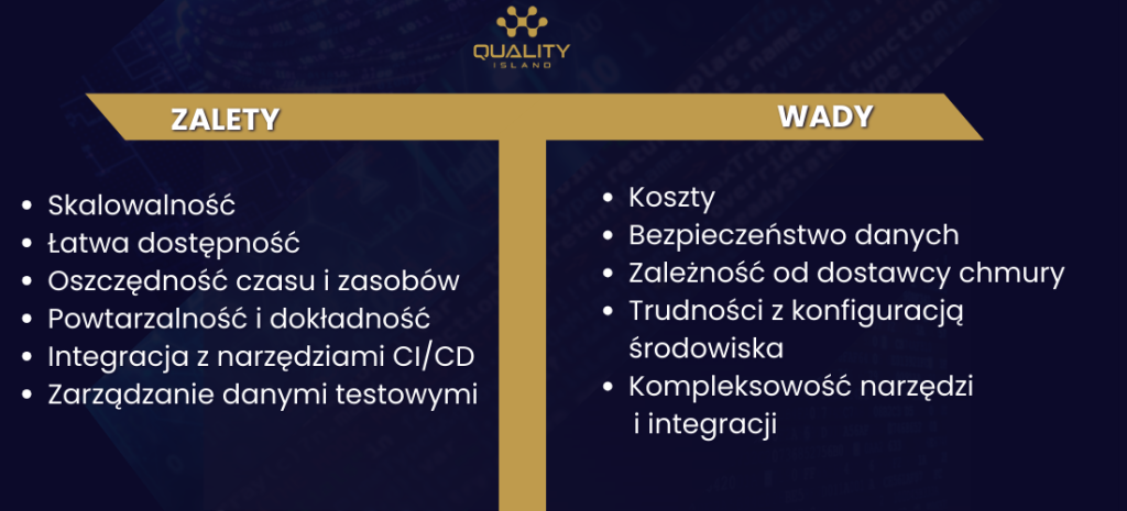 3. Zależność od dostawcy: Wiązanie się z konkretnym dostawcą chmury może prowadzić do sytuacji, w której trudno jest przenieść procesy testowania do innej platformy.