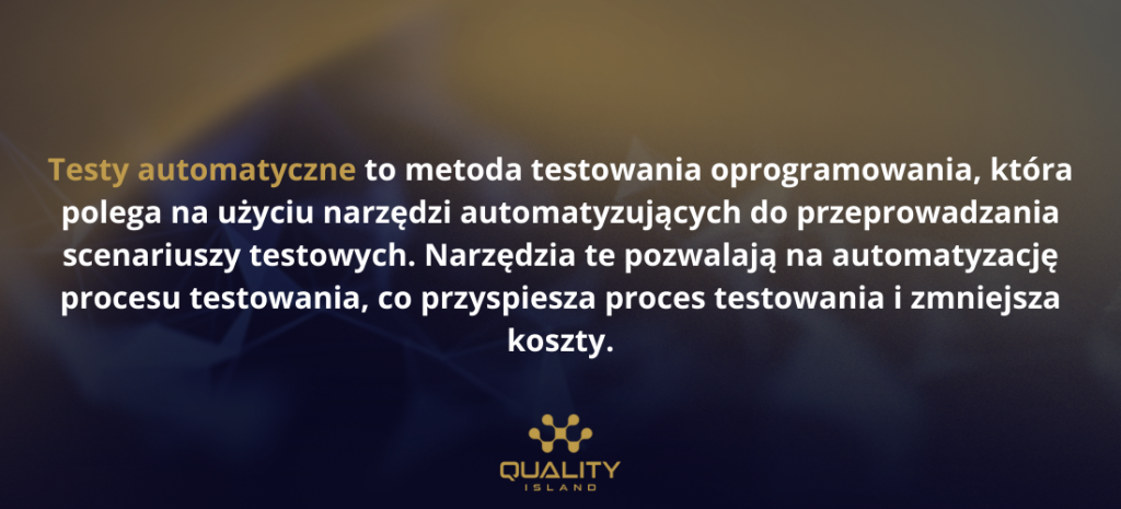 Testy automatyczne to metoda testowania oprogramowania, która polega na użyciu narzędzi automatyzujących do przeprowadzania scenariuszy testowych. Narzędzia te pozwalają na automatyzację procesu testowania, co przyspiesza proces testowania i zmniejsza koszty.