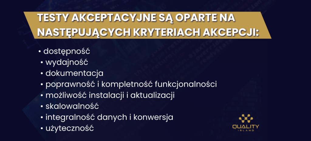 Testy akceptacyjne są oparte na kryteriach akceptacji, takich jak: